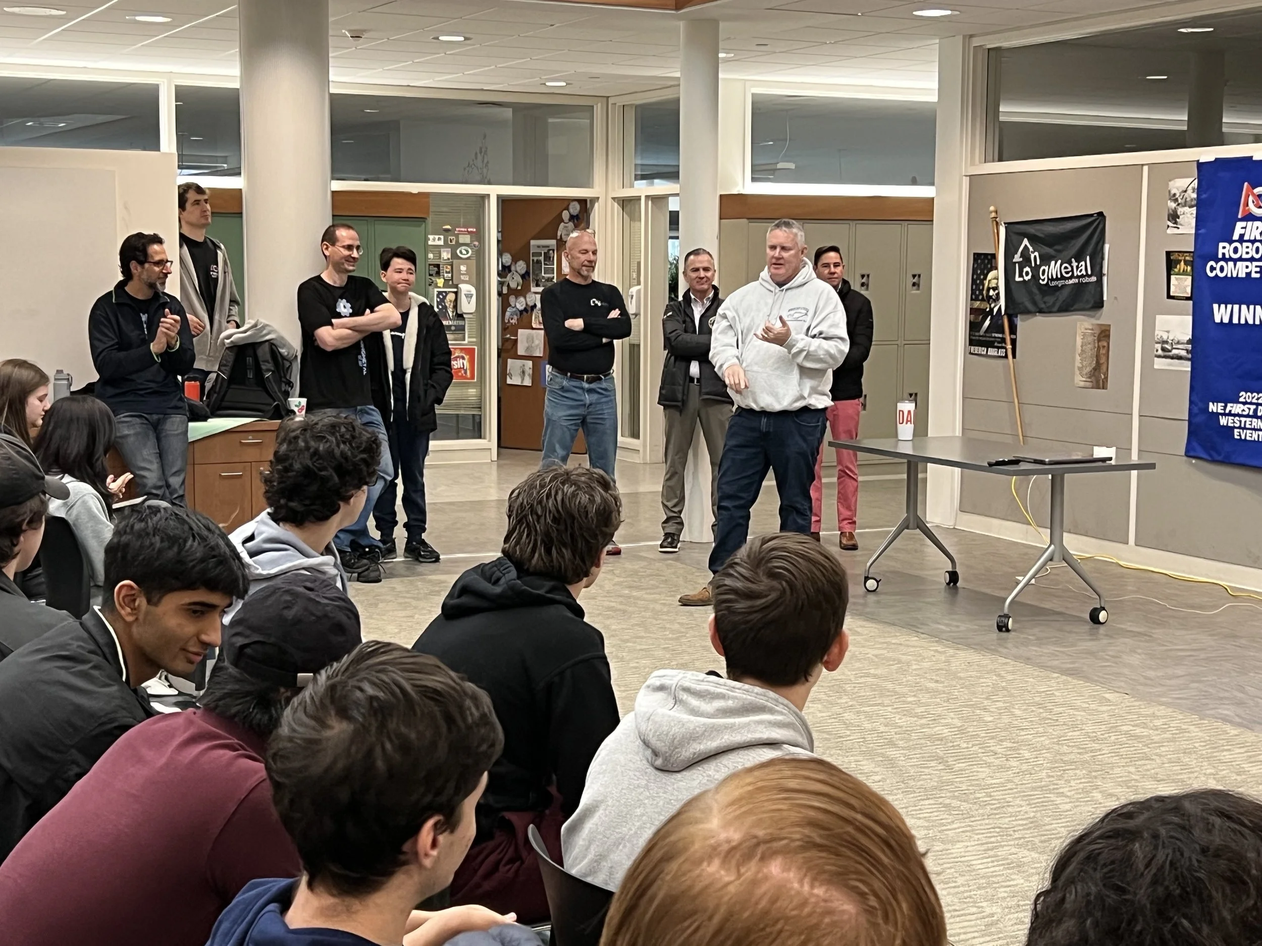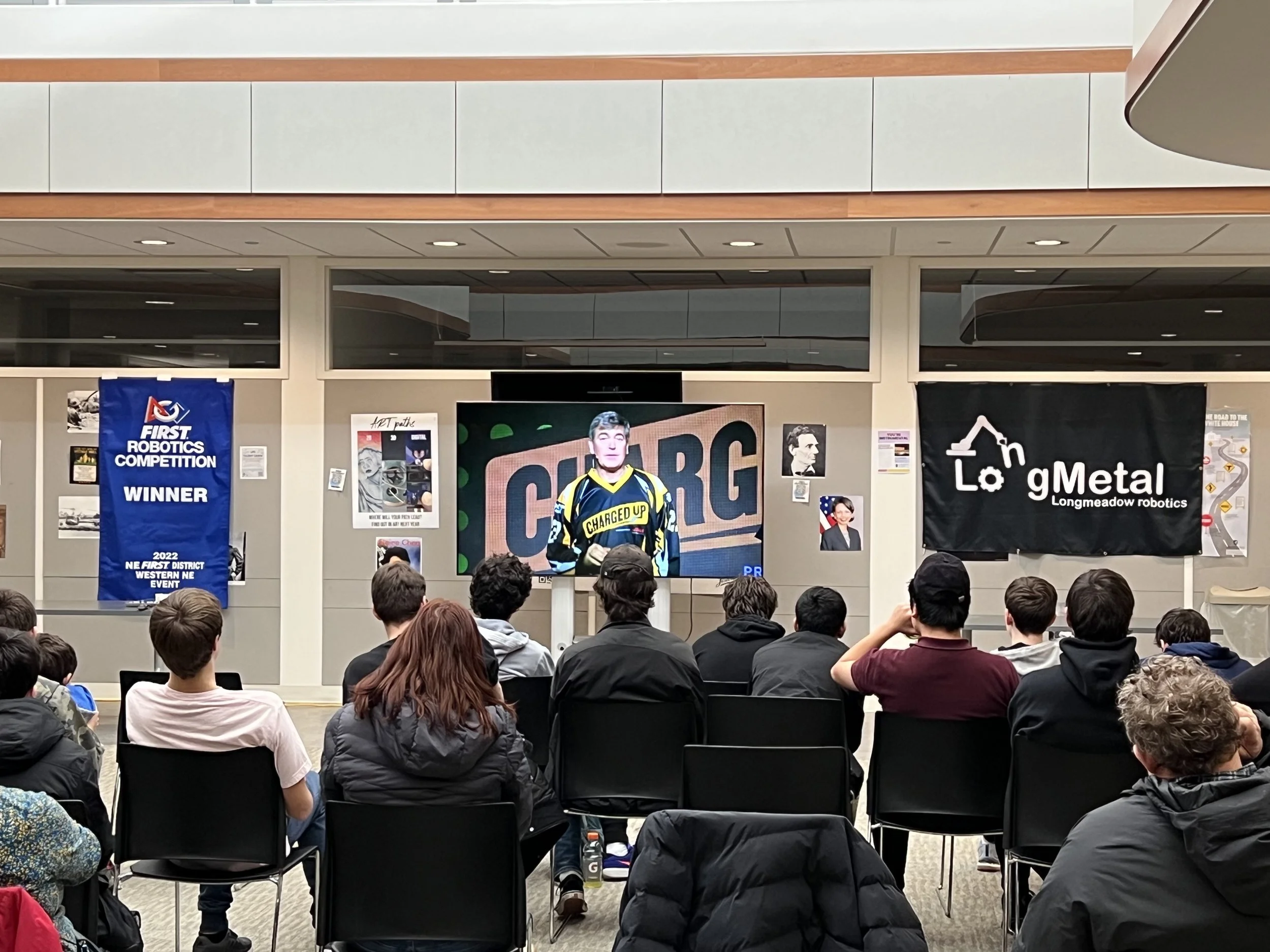 It’s finally here! The 2023 FIRST Robotics Competition Global Kick-Off and Team LongMetal, along with friends, family, alumni and special guests are ready! The team gathered at Longmeadow High School together with Massachusetts State Rep Brian Ashe, Massachusetts State Senator Jake Oliveira, and Principal Tom Landers to Get Charged Up for the season!